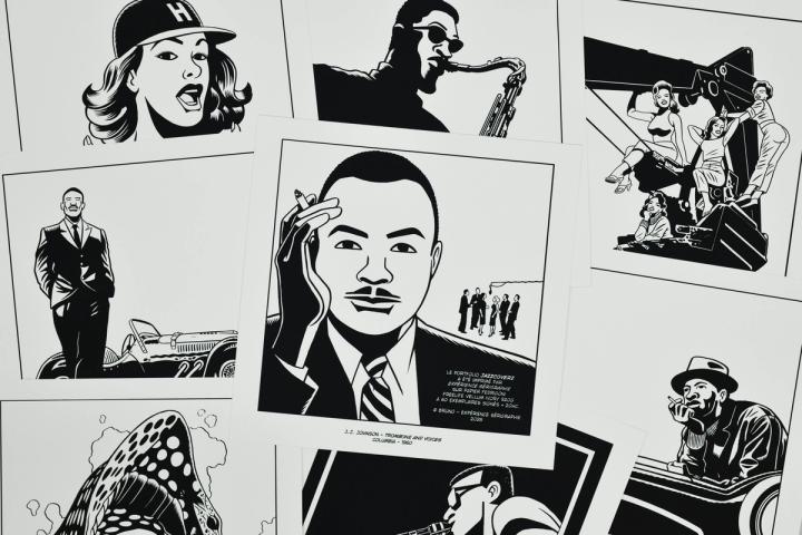 Brüno est un fan de musique soul, jazz et les vinyles de l'époque sont une source inépuisable d'inspiration pour un dessinateur comme lui.