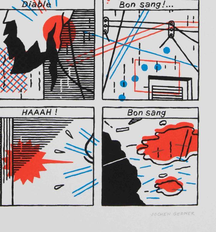 En 2021 à l'occasion de l'expostion A la croisée des chemins de la fondation Bullukian, nous avons réalisés trois sérigraphies avec les auteurs concernés : Edmond Baudoin, Jochen Gerner et Nicolas de Crécy.