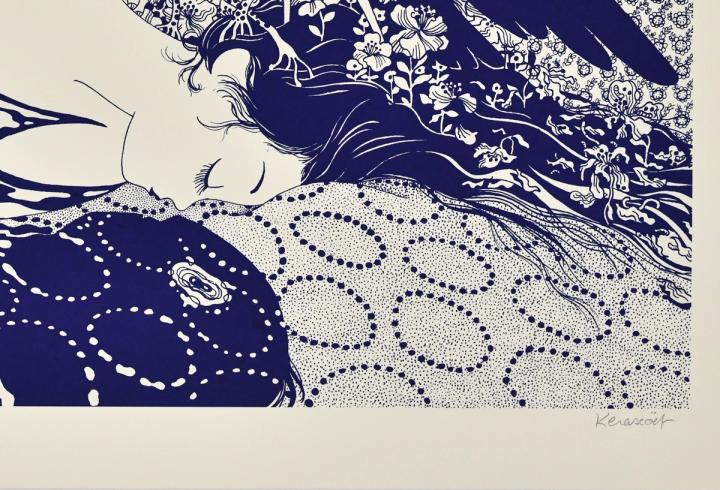 Ce dessin est décliné en deux sérigraphies : bleu marine sur papier ivoire et aubergine sur papier rose gold. A vous de choisir !