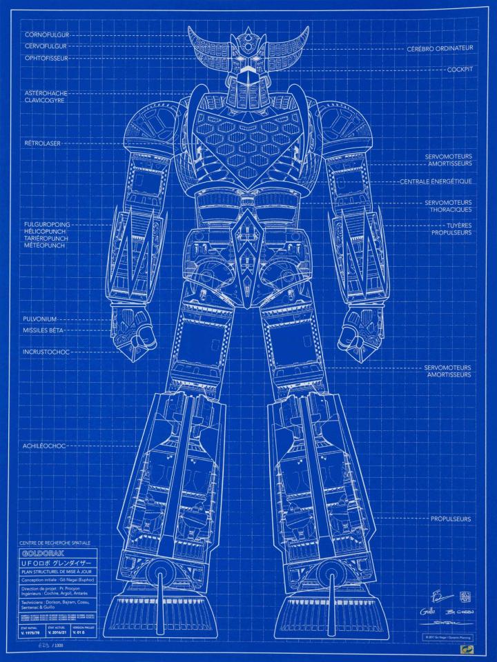 Les éditions Kana nous ont commandé une série de plusieurs sérigraphies de Goldorak ! Elles sont toutes réalisées par Denis Bajram, Brice Cossu, Xavier Dorison, Yoann Guillo et Alexis Sentenac d'après l'univers de Gō Nagai.