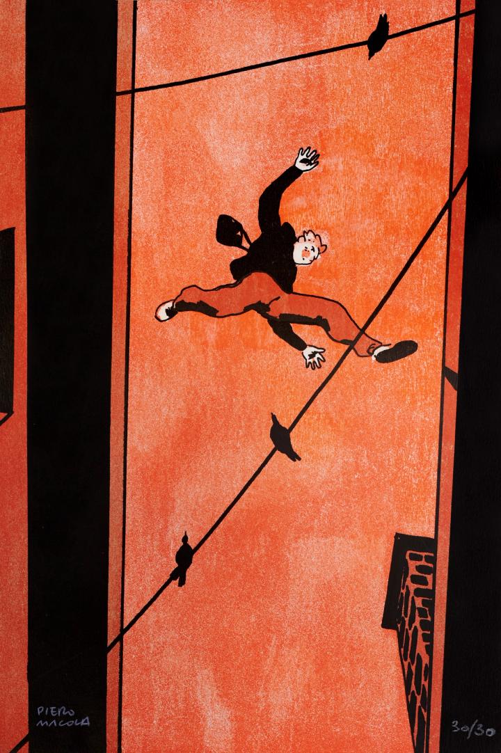 Pour la deuxième année consécutive nous réalisons pour le festival Quais du polar, une sérigraphie en 20x30 pour leurs remises de prix. En 2O24 c'était un visuel de Florent Maudoux et pour 2025 c'est au tour de Piero Macola de s'y coller.