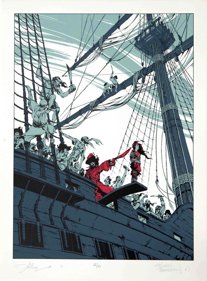 40x50 cm Papier Fedrigoni old mil blanco 350gr 4 passages couleurs 111 exemplaires numérotés et signés par Jean & Bourgouin